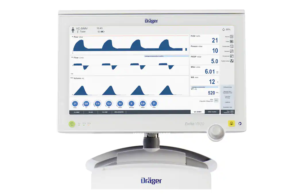 Корректный мониторинг вентиляции пациента благодаря отображению параметров уже с учетом компенсации утечек